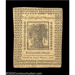 <TABLE cellSpacing=0 cellPadding=0 width="100%" bgColor=#000000 border=0><TBODY> <TR><TD width="100%"><TABLE cellSpacing=1 cellPadding=3 width="100%" border=0><TBODY><TR><TD width="100%" bgColor=#79735c><FONT face=arial color=#ffffff size=3><B>Description</B> </FONT></TD></TR><TR><TD width="100%" bgColor=#ffffff><FONT face=arial size=2><B>Delaware January 1, 1776 2s6d About New.</B></I> Well signed and problem-free save for a very minor stain at the bottom left. (250-up ) </FONT></TD></TR></TBODY></TABLE></TD></TR></TBODY></TABLE><BR><TABLE cellSpacing=0 cellPadding=0 width="100%" bgColor=#000000 border=0><TBODY><TR> Important notice: Heritage usually auctions material at the rate of 200-250 lots per hour. On some occasions eBay Live bid software or the Internet may not be able to keep up with the pace of the auction. We recommend placing a realistic absentee bid now as insurance to avoid disappointment. Occasionally the auctioneer may eliminate or reject an eBay Live bid, and the auctioneer may also reopen a lot after the close of the eBay live bidding (usually because we missed an audience bid), and may reject your bid even if it shows you as the winning bidder. By bidding via eBay Live, you agree that Heritage may award the lot to another bidder at its sole discretion under the circumstances described above or any other reasonable circumstances. Also please note that all Heritage lots purchased through eBay Live carry a 20% Buyer's Premium. Please make sure you read the Terms and Conditions before you bid.</TR></TBODY></TABLE>