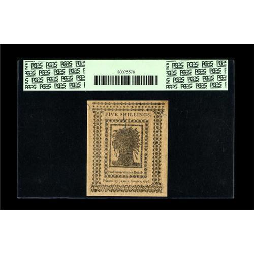 Delaware January 1, 1776 5s PCGS Gem New 65.