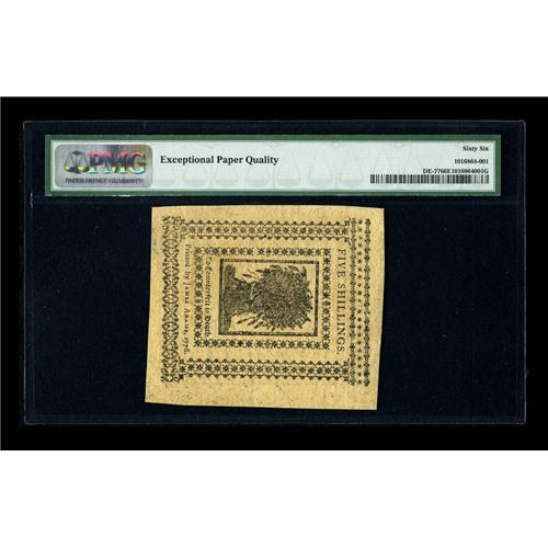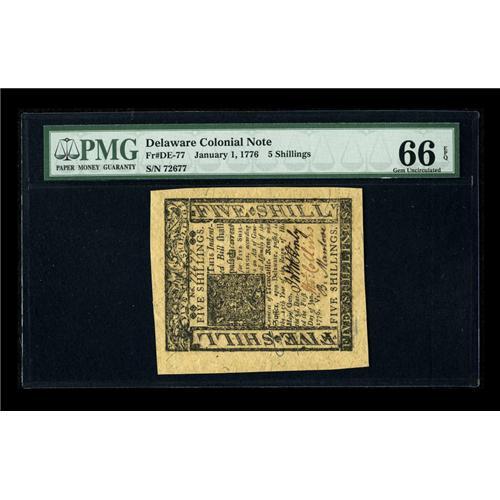 Delaware January 1, 1776 5s PMG Gem Uncirculated 66 EPQ