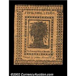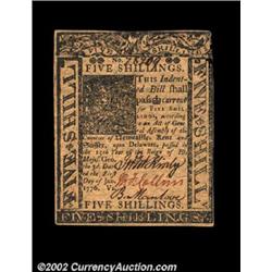 Delaware January 1, 1776 5s Very Choice New. A near-Gem example from the only common Delaware issue.
