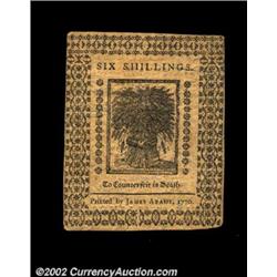 Delaware January 1 1776 6s New. Closely margined all around and with slightly rounded corners, but fully uncirculated and well signed. Important notice: We expect to be auctioning lots at the rate of 200-250 per hour. Sometimes eBay Premier live bid software cannot keep up with that pace, so we strongly recommend that you place a realistic proxy bid now as insurance to avoid disappointment. Also please note that all Heritage/CAA lots purchased through eBay Premier carry a 20% Buyer's Premium. Please make sure you read the Terms and Conditions.