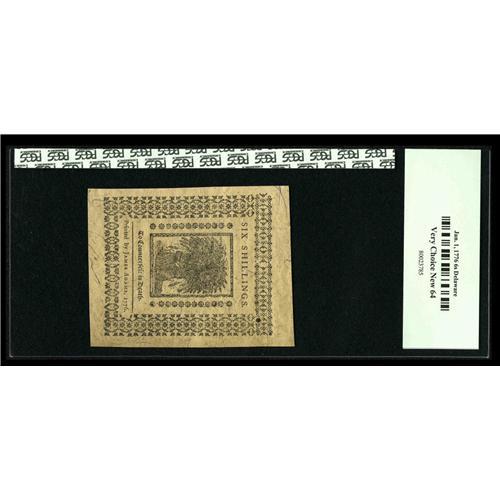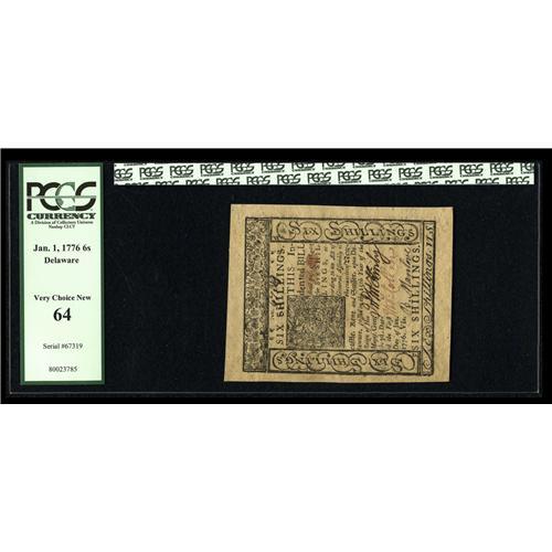 Delaware January 1, 1776 6s PCGS Very Choice New 64. Th Delaware January 1, 1776 6s PCGS Very Choice