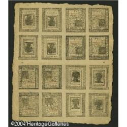 Delaware January 1, 1776 Double Sheet of Sixteen. T <B>Delaware January 1, 1776 Double Sheet of Sixteen.</B></I> This pristine sheet contains four each of four different denominations: 4s, 5s, 6s, and 10s. But for a fold between the two panes of eight and two holes along that fold where the original sheets were sown together this item is flawless. Neither the fold nor the two needle holes are anywhere near any of the sixteen subjects, every one of which is a simply <B>Superb Gem.</B></I> Three sales ago, we cut up an identical sheet and the individual Superb notes all realized over $600. Hopefully this sheet will remain together as a display item or collection showpiece, but were it to be cut, it contains over $10,000 in Superb notes. <BR><BR><B>Important notice:</B> Heritage usually auctions material at the rate of 200-250 lots per hour. On some occasions eBay Live bid software or the Internet may not be able to keep up with the pace of the auction. We recommend placing a realistic absentee bid now as insurance to avoid disappointment. Occasionally the auctioneer may eliminate or reject an eBay Live bid, and the auctioneer may also reopen a lot after the close of the eBay live bidding (usually because we missed an audience bid), and may reject your bid even if it shows you as the winning bidder. By bidding via eBay Live, you agree that Heritage may award the lot to another bidder at its sole discretion under the circumstances described above or any other reasonable circumstances. Since eBay bids are not shown to us until we open the lot on the floor, we treat those bids just like floor bids. In most cases the floor responds before the eBay bid is presented to us, due to Internet lag time, so for consistency we have made it a policy that floor bids are always considered first over tie eBay live bids. Also please note that all Heritage lots purchased through eBay Live carry a 20% Buyer's Premium. Please make sure you read the Terms and Conditions before you bid. This lot is being auctioned in conjunction with a live floor auction by Heritage Galleries & Auctioneers. All final auction and invoice information will be supplied by Heritage Galleries & Auctioneers, and all other information should be considered preliminary. Lot:15103