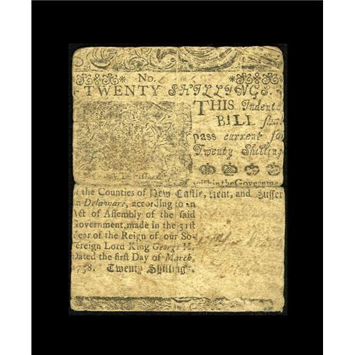 Delaware March 1, 1758 20s Fine. This is an ideal examp