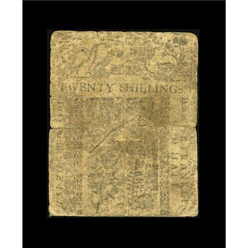 <B>Delaware March 1, 1758 20s Fine.</B></I> This is an ideal example for the grade with a slightly stronger face than back. It appears to be restoration free, and the corners are nowhere near as rounded as most known examples. The all-important "Printed by B. Franklin" is easily seen.<BR><BR><b>Shipping:</b> Coins & Currency (<a target="_blank" href="http://www.heritageauctions.com/common/shipping.php">view shipping information</a>)