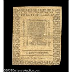 <TABLE cellSpacing=0 cellPadding=0 width="100%" bgColor=#000000 border=0><TBODY> <TR><TD width="100%"><TABLE cellSpacing=1 cellPadding=3 width="100%" border=0><TBODY><TR><TD width="100%" bgColor=#79735c><FONT face=arial color=#ffffff size=3><B>Description</B> </FONT></TD></TR><TR><TD width="100%" bgColor=#ffffff><FONT face=arial size=2><B>Delaware May 1, 1777 20s Choice Very Fine.</B></I> Gorgeous from the face, with the look of a much higher grade. The back is slightly weaker. This is the highest denomination from the final Delaware issue. (250-up ) </FONT></TD></TR></TBODY></TABLE></TD></TR></TBODY></TABLE><BR><TABLE cellSpacing=0 cellPadding=0 width="100%" bgColor=#000000 border=0><TBODY><TR> Important notice: Heritage usually auctions material at the rate of 200-250 lots per hour. On some occasions eBay Live bid software or the Internet may not be able to keep up with the pace of the auction. We recommend placing a realistic absentee bid now as insurance to avoid disappointment. Occasionally the auctioneer may eliminate or reject an eBay Live bid, and the auctioneer may also reopen a lot after the close of the eBay live bidding (usually because we missed an audience bid), and may reject your bid even if it shows you as the winning bidder. By bidding via eBay Live, you agree that Heritage may award the lot to another bidder at its sole discretion under the circumstances described above or any other reasonable circumstances. Also please note that all Heritage lots purchased through eBay Live carry a 20% Buyer's Premium. Please make sure you read the Terms and Conditions before you bid.</TR></TBODY></TABLE>