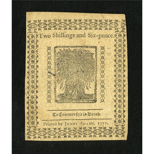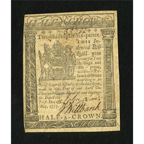 <B>Delaware May 1, 1777 2s/6d Extremely Fine.</B></I> This is an attractive note with a little handling and some light staining.<BR><BR><b>Shipping:</b> Coins & Currency (<a target="_blank" href="http://www.heritageauctions.com/common/shipping.php">view shipping information</a>)