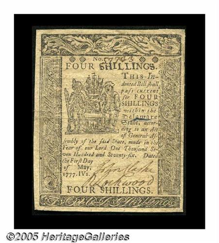 <B>Delaware May 1, 1777 4s Extremely Fine-About New.</B></I> An ideal example of the grade with good margins, strong signatures and excellent eye appeal.
