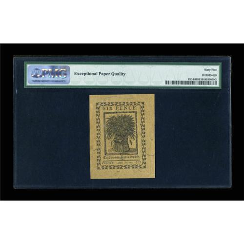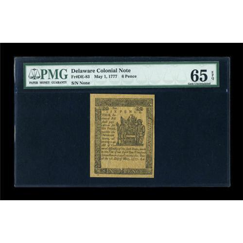 Delaware May 1, 1777 6d PMG Gem Uncirculated 65.