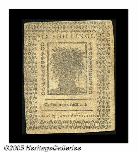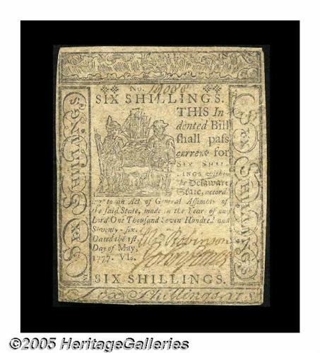 <B>Delaware May 1, 1777 6s Extremely Fine.</B></I> Lightly and evenly circulated.