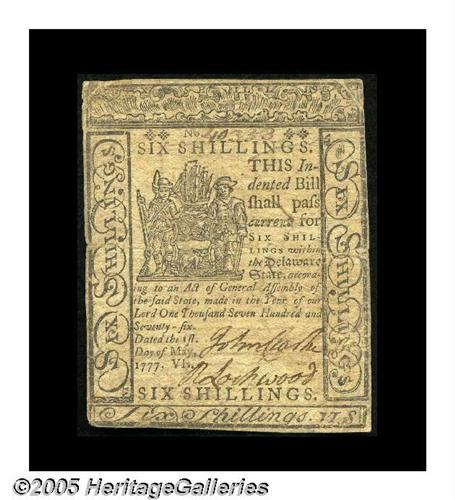 <B>Delaware May 1, 1777 6s Extremely Fine.</B></I> Well-signed and problem-free.