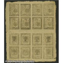 Delaware May 1, 1777 Double Sheet of Sixteen About Unci <B>Delaware May 1, 1777 Double Sheet of Sixteen.</B></I> This is the only complete sheet that we have ever seen or heard of from this issue. It is lightly quarter-folded, with a few stray handling marks, and edge splits that do not touch any notes. Taken individually, the notes are about half <B>Choice About New</B></I> and half <B>Superb Gem,</B></I> based on where the light sheet folds fall. There are two notes each of the eight different denominations: 1s, 18d, 2s6d, 4s, 5s, 6s, 10s, and 20s. Were this sheet to be cut, there would be over $10,000 worth of individual notes and in fact our consignor only reluctantly agreed to allow this to be offered in its original sheet form. This is an incredible display item or put-away piece for the future. <BR><BR><B>Important notice:</B> Heritage usually auctions material at the rate of 200-250 lots per hour. On some occasions eBay Live bid software or the Internet may not be able to keep up with the pace of the auction. We recommend placing a realistic absentee bid now as insurance to avoid disappointment. Occasionally the auctioneer may eliminate or reject an eBay Live bid, and the auctioneer may also reopen a lot after the close of the eBay live bidding (usually because we missed an audience bid), and may reject your bid even if it shows you as the winning bidder. By bidding via eBay Live, you agree that Heritage may award the lot to another bidder at its sole discretion under the circumstances described above or any other reasonable circumstances. Since eBay bids are not shown to us until we open the lot on the floor, we treat those bids just like floor bids. In most cases the floor responds before the eBay bid is presented to us, due to Internet lag time, so for consistency we have made it a policy that floor bids are always considered first over tie eBay live bids. Also please note that all Heritage lots purchased through eBay Live carry a 20% Buyer's Premium. Please make sure you read the Terms and Conditions before you bid. This lot is being auctioned in conjunction with a live floor auction by Heritage Galleries & Auctioneers. All final auction and invoice information will be supplied by Heritage Galleries & Auctioneers, and all other information should be considered preliminary. Lot:15115
