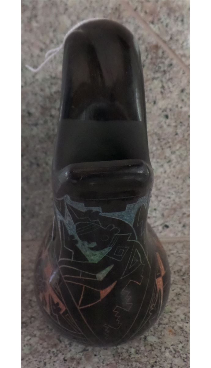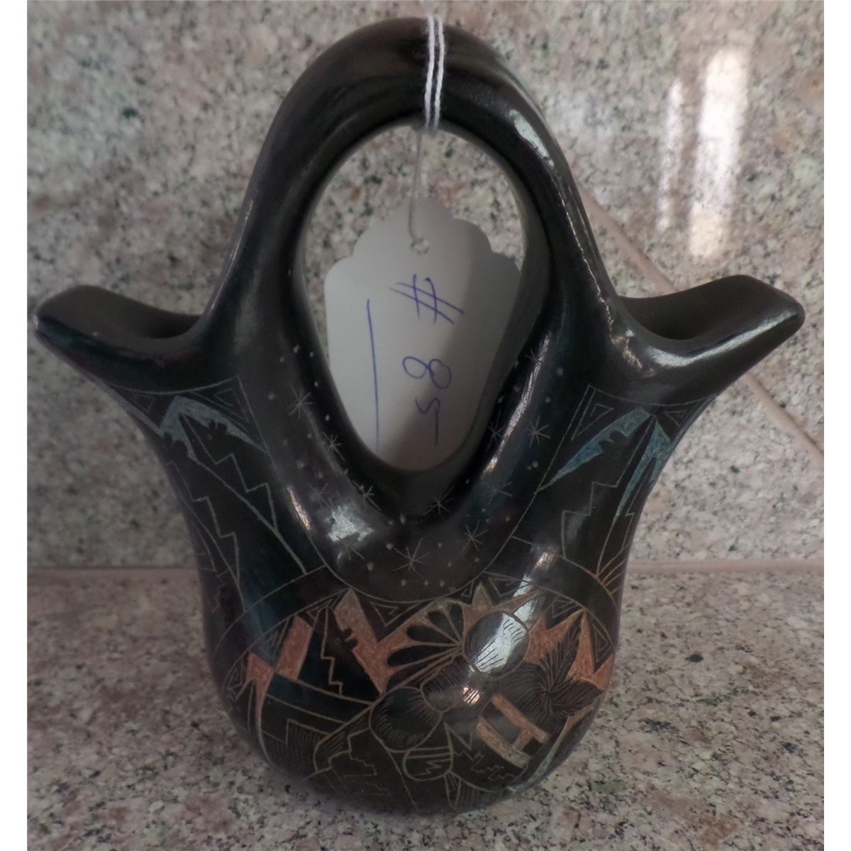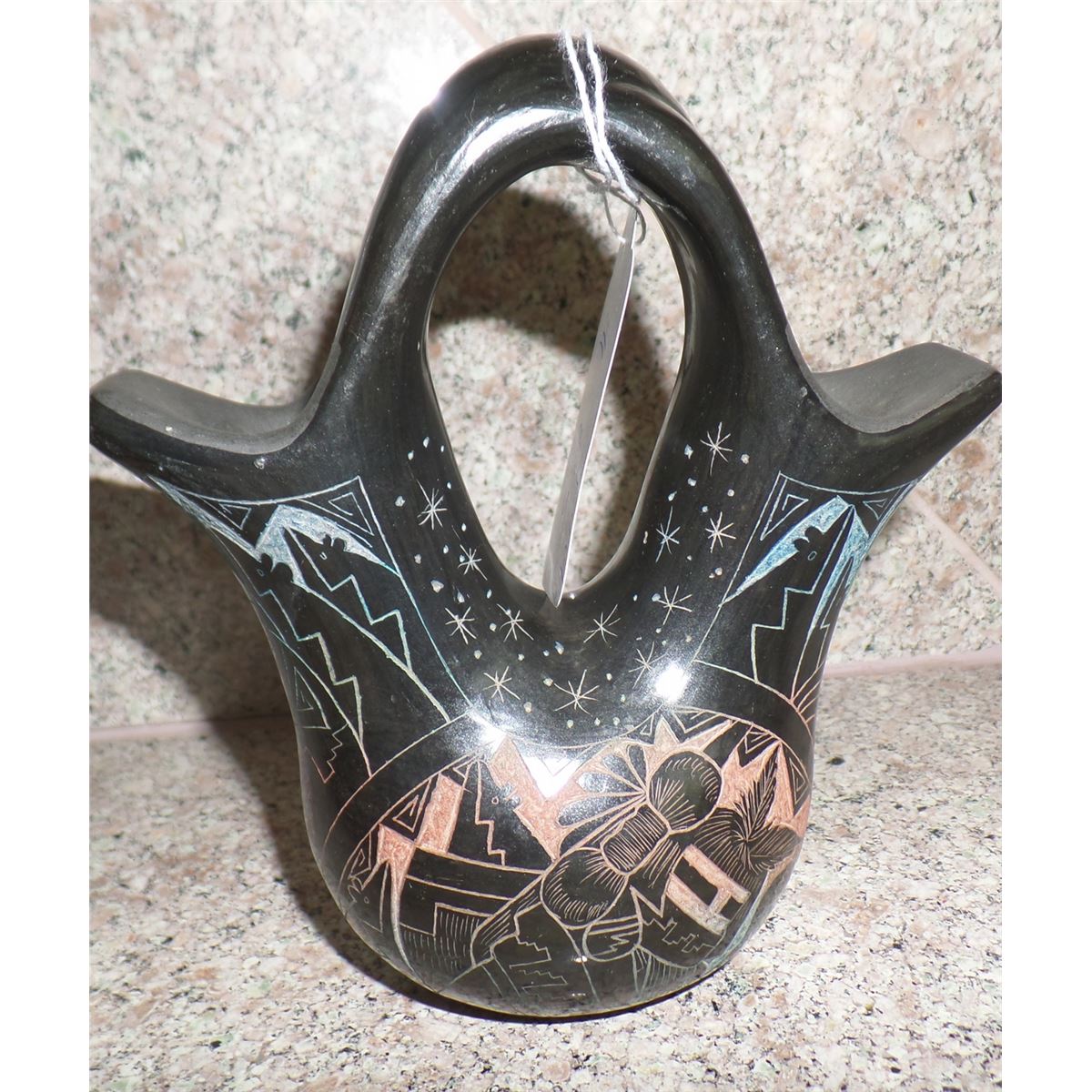 Rare Hopi Wedding pottery item from the 196 0's. This clay and paint item measures 6 1/2 x 6 x 3 inches and is from Northern, Arizona. It is in good condition with carvings of bears covering the pot. This is signed Delawepi, New Mexico. Shipping $20.00 must be double wrapped