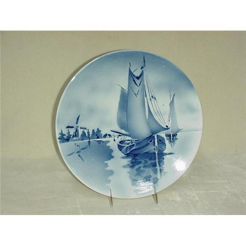A german charger, painted in the delft style with sailing boats and a windmill, 12" in diameter, the plate has holes in the back for hanging. The condition is very good, there are some scratches on the face of the plate but no chips or cracks.