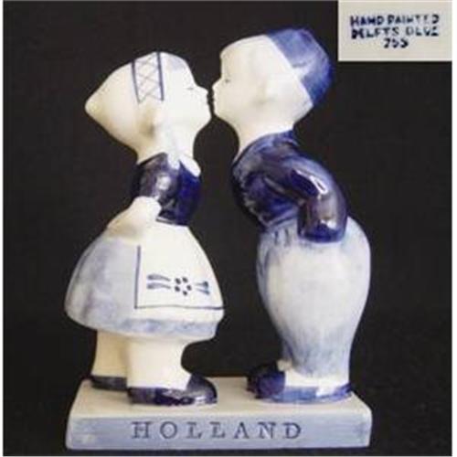 Delft Figurine Of A Hand Painted Dutch Boy And Girl Kissing Colbalt Blue And White