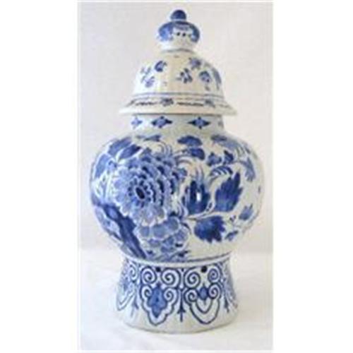 More Pictures are available.Blue and White Delft Covered Jar. Marked ?Delft? on the base.13.1/4? tall to the top of the lid. 22? around the fattest part. Circa 1995. Purchased directly from the Delft Factory. No damage.
