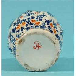 Delft polychrome vase with cover, maker's mark with Greek A (1701-1722), h. 16,5 cm. (slight dama…