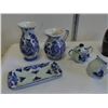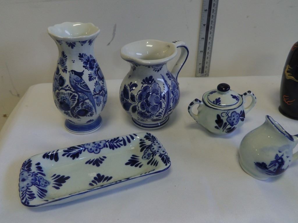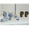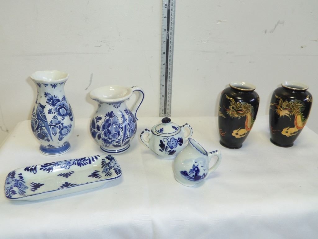 Delfts Blue Mini Vases, Tray and 2 Asian Vases