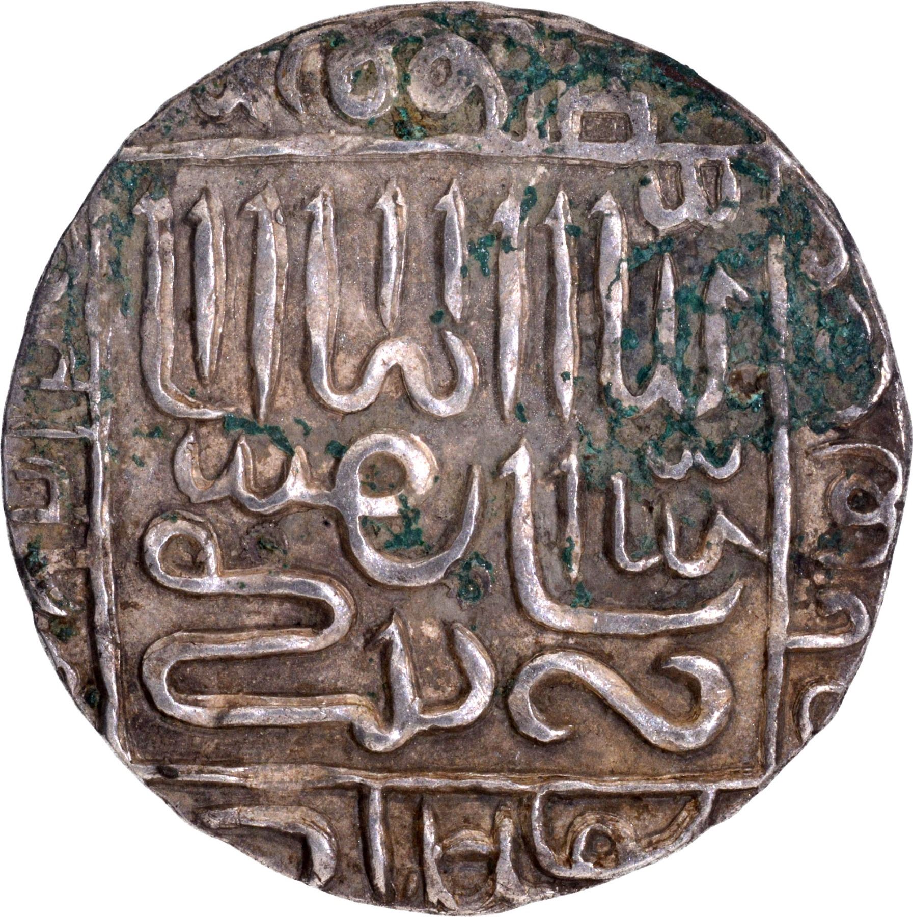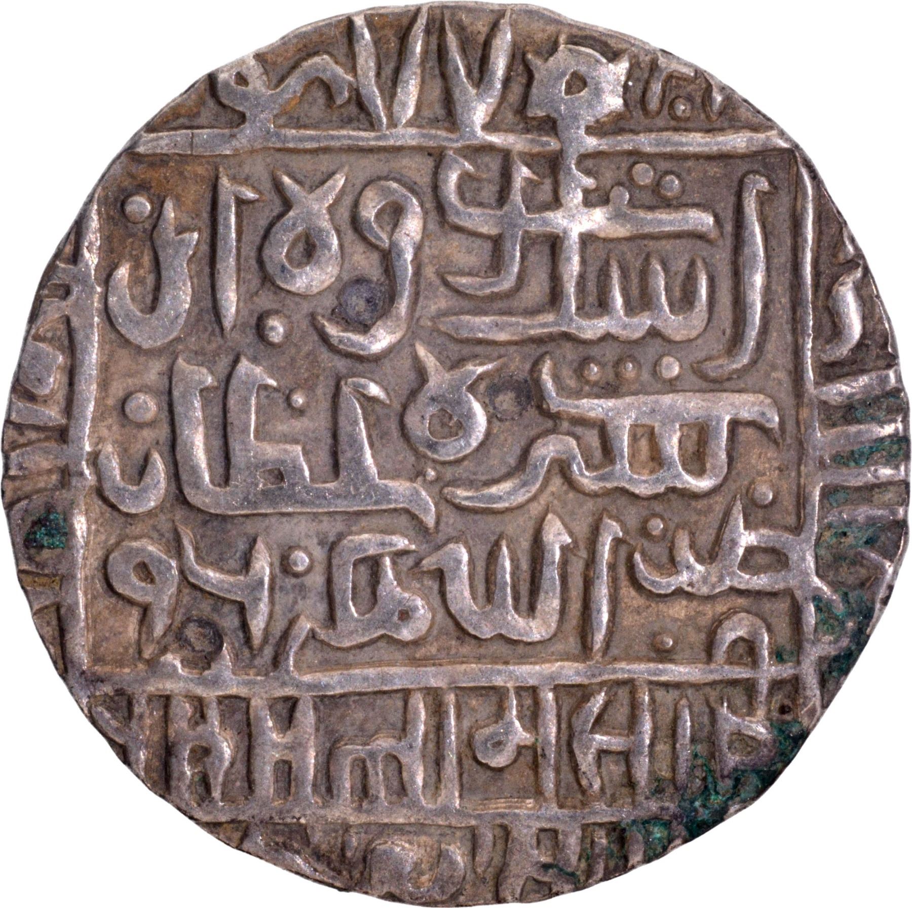 Delhi Sultanate, Suri Dynasty, Islam Shah (AH 952-960/1545-1552 AD), Retrograde legends on obverse, "Mintless" & "1477" Type, Silver Rupee, AH 960, Obv: Arabic legend Retrograde The Kalima Shahada within a square, the four Caliphs' names in the margin, Rev: Arabic legend "al-sultan bin al-sultan Jalal-ud Duniya wa’l din Abu’l Muzaffar" in the margin, "Islam Shah bin Sher Shah sultan khuld Allahu Mulkahu" with Hijri year within square & Nagari legend "Sri Islam Sahi" at the bottom, 10.8g, 34.24mm, (G&G # D980), test marks, about extremely fine, Rare.