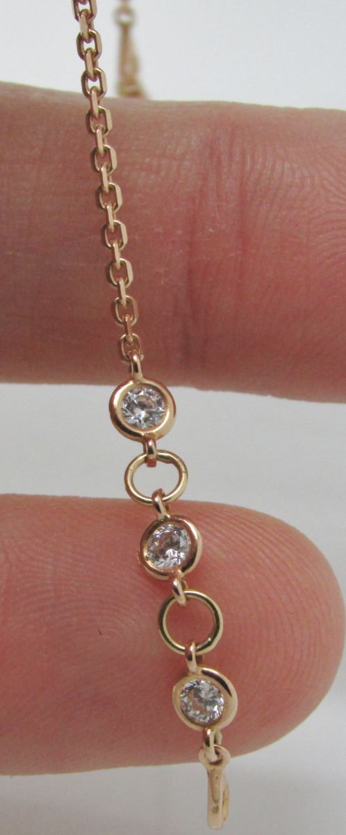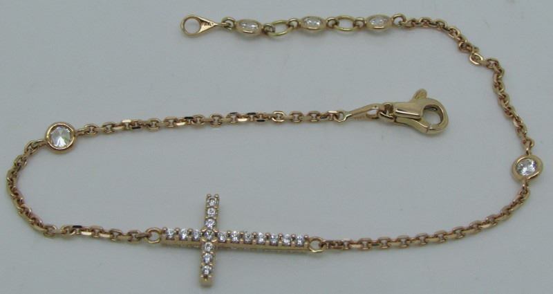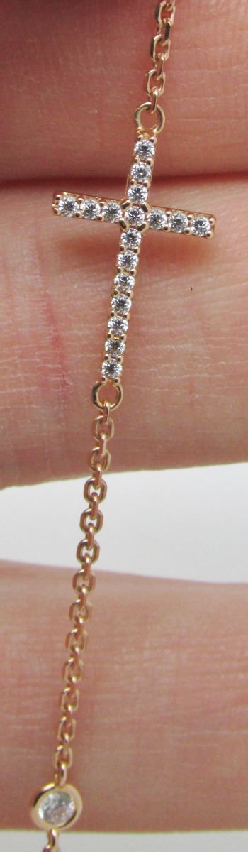 Delicate 18 Kt Rose Gold Chain Link Bracelet With Cubic Cross Link - Adjustable (6 1/4 - 7") - 2.7 Grams