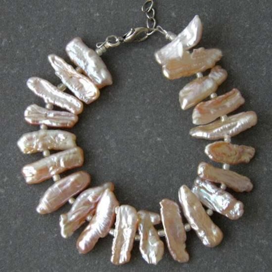 Delicate Soft Pink Genuine Pearl sticks Bracelet, measures approximately 7.5in, silver lobster claw closure