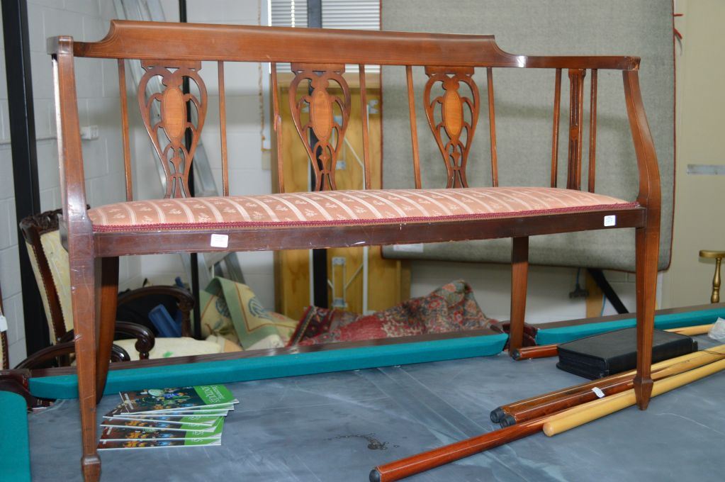Delicate wooden bench with upholstered seat and satin wood inlay