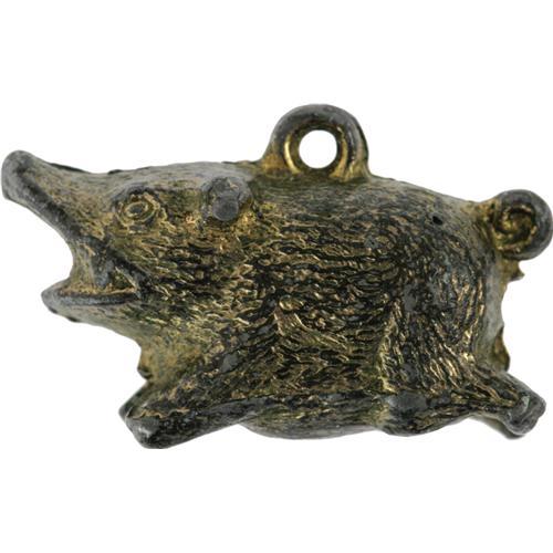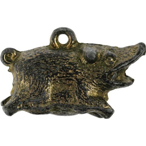 <B>Delightful Anti-Benjamin Harrison Pig Charm.</B></I> If you hold it up to the light and look into the pig's rear end, you see Harrison (the implication being that this is the only place he would ever be elected president!). First appearing for both 1872 candidates, these pigs seem to have been made for every candidate through 1908, except that we have never seen a Teddy Roosevelt (perhaps a tribute to his overwhelming popularity). Excellent condition, and always a collector favorite. Length 1", made of metal and lightly gilded.