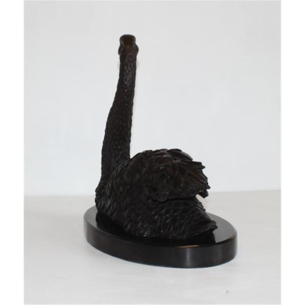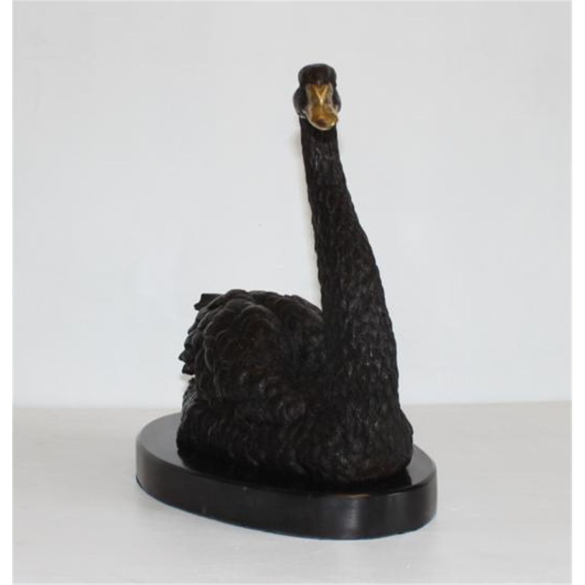 Single Swan Bronze Sculpture, After Lobo, 13"L x 13"H x 8"18 lbs. This bronze sculpture was produced using the "Lost Wax" casting method. The"Lost Wax" Cast method is the most precise metal casting technique in existence, ensuring exquisite detail of the original host model which is usually sculpted in clay or wax. This "Lost Wax" casting method is an extremely labor intensive and expensive process, but the end results produce a Heirloom Quality Masterpiece!