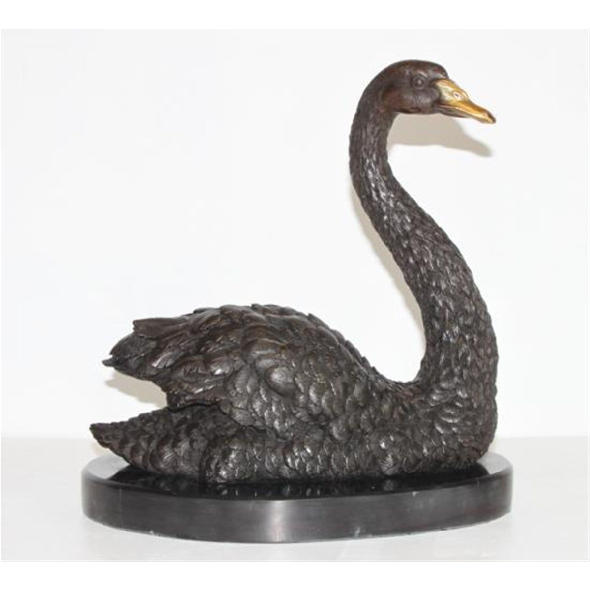 Single Swan Bronze Sculpture, After Lobo, 13"L x 13"H x 8"18 lbs. This bronze sculpture was produced using the "Lost Wax" casting method. The"Lost Wax" Cast method is the most precise metal casting technique in existence, ensuring exquisite detail of the original host model which is usually sculpted in clay or wax. This "Lost Wax" casting method is an extremely labor intensive and expensive process, but the end results produce a Heirloom Quality Masterpiece!