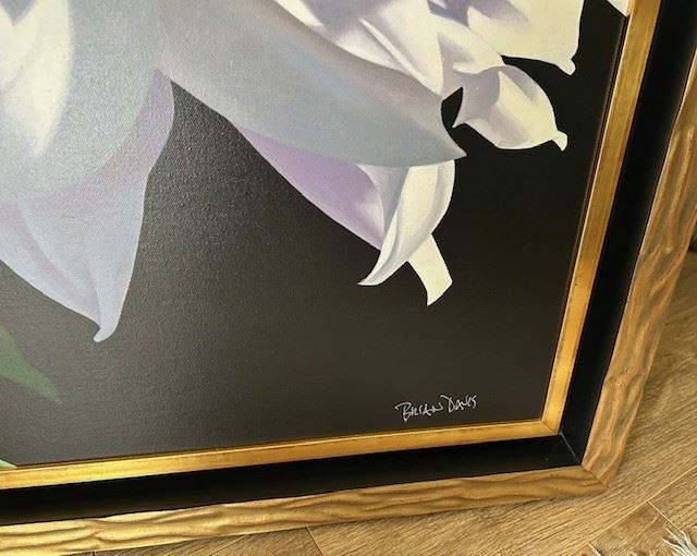 Museum collected artist Brian Davis, famous for his portraits of flowers created this 26x40" signed & numbered giclee on canvas in 2003. it is framed in gold with black sides. This is from an edition of 295, w/COA.