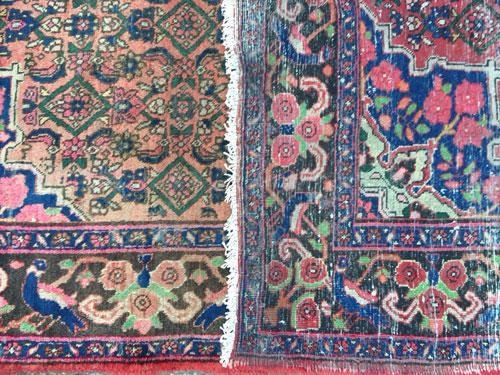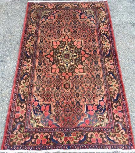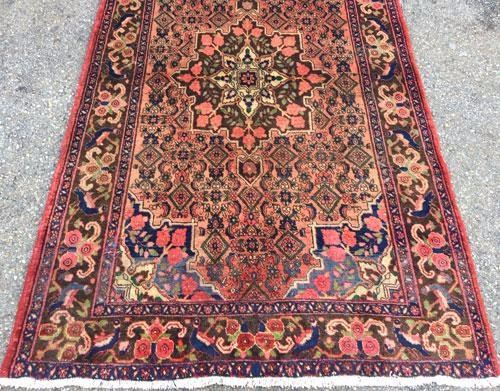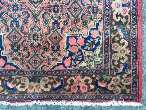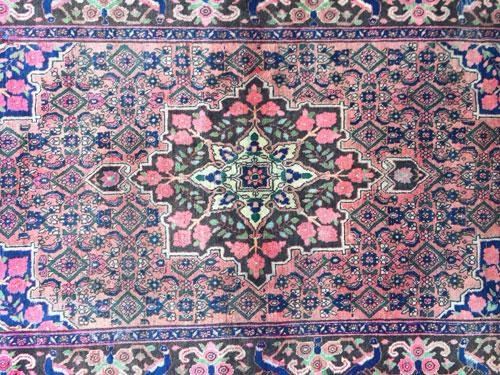 Delightful High Quality Vintage Persian Bidjar Rug. 100%Natural, vegetable dye, hand woven, worsted wool pile on cotton foundation. This is a vintage Mid-20th century fine Bidjar. Bidjars are referred to as the iron rug for their durability and wear-forever quality. Bidjars are among the rugs with highly packed weave, therefore creating a crisp and well defined design and pattern. This is an absolutely beautiful handmade highly compact weave Bidjar with a stylized fish design on a soft salmon color background. The name Bidjar denotes the meaning of durability to many carpet specialists. The weaver uses their heavy metal combs, to beat the weft and the knots, to the paint that the pile almost stands up. This lovely piece is in mint condition. Size: 7 feet 2 inches X 4 feet 4 inches. Country of Origin: Iran.