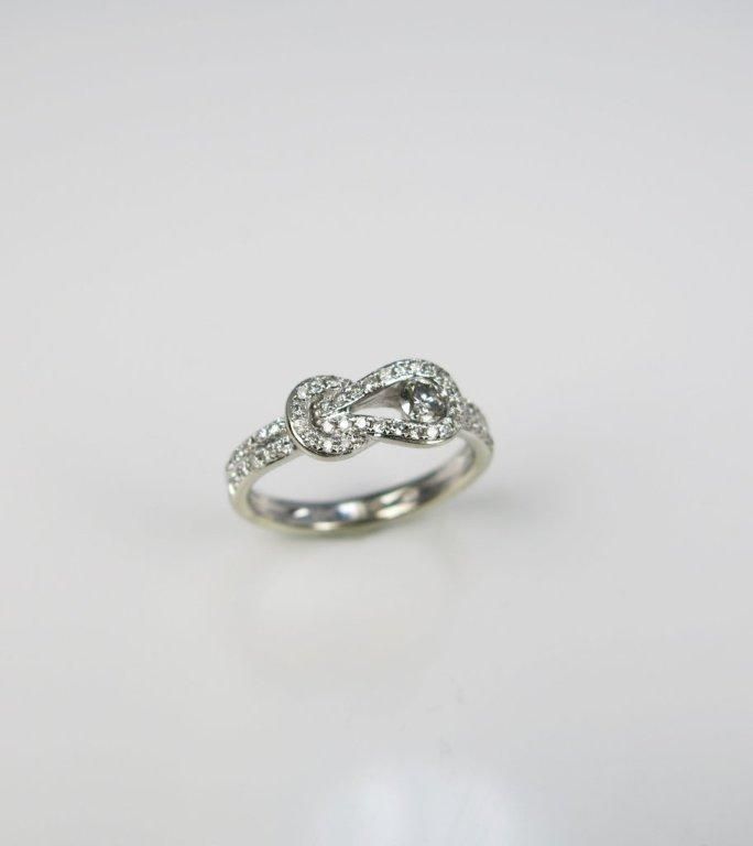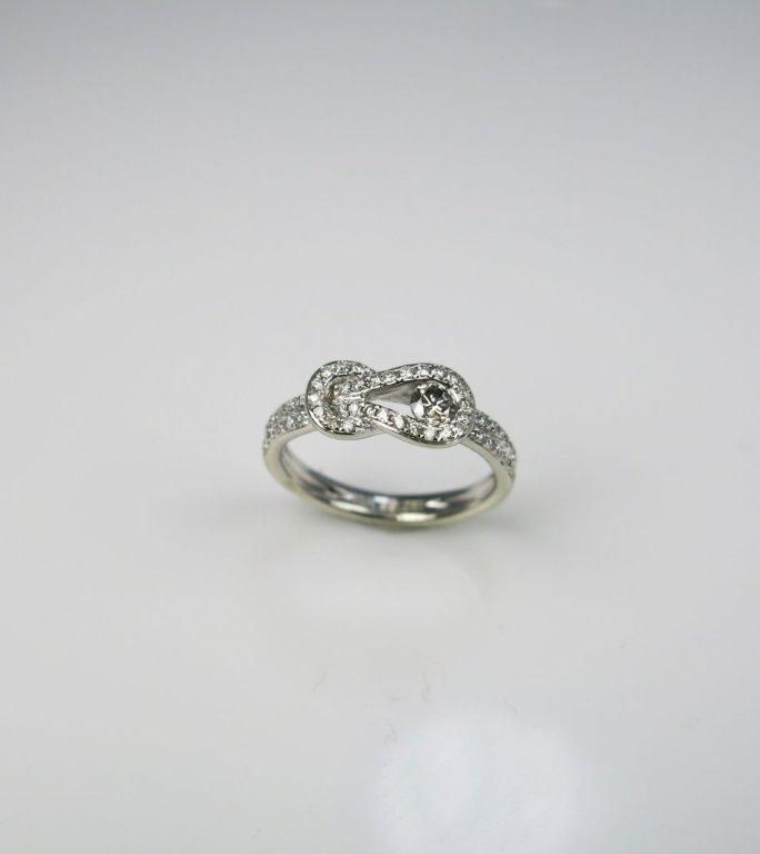 With 0.20 carat center diamond and 52 pave set diamonds weighing approx 0.60 carats with H-I colors set in 10 karat white gold.