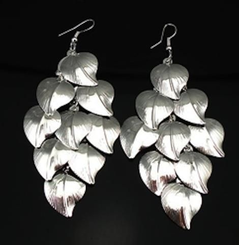 Delightful Silver tone Leaf Chandelier Dangle Drop Earrings measure approx 3.5 inches in length