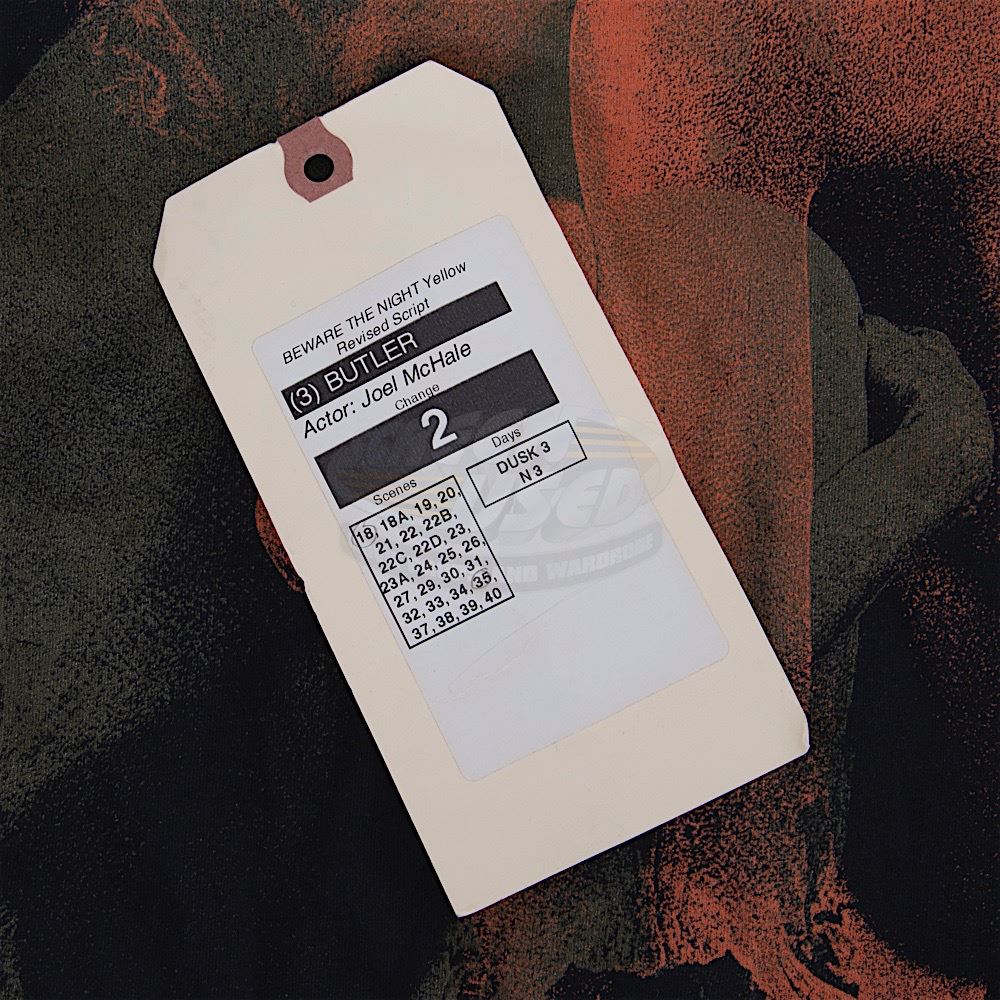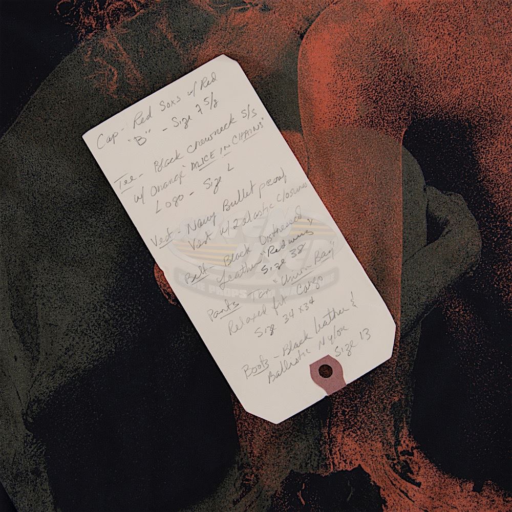 (Screen Gems, 2014) This outfit was acquired by the production for use by Joel McHale as "Butler". The outfit consists of a size large "Alice In Chains" t-shirt, baseball cap, a pair of pants, a leather belt, police vest, a pair of size 13 US boots and a pair of socks. The outfit has wear consistent with use. Included with the outfit is a production used costume tag that details the entire outfit, change and scene numbers used.