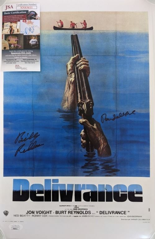 Billy Redden Banjo Boy & Randall Deal signed Deliverance mini poster JSA Authenticated. 11x17 inches. HL17493