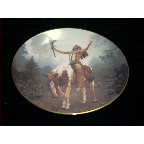 Deliverance by Chuck Ren. This one also comes in a box and with all cert and paperwork. Plate number is 4153 U and has 28 days of firing, and it has 23 K gold trim and came from MYSTIC WARRIERS PLATE COLLECTION. Perfect condition and a great add to any collection you may have. Great gift item also. Enjoy.