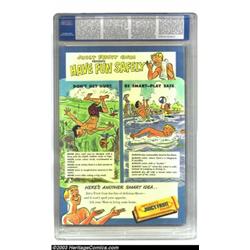 Dell Giant Comics - Donald Duck Beach Party #5 (Gold Key, 1958) CGC NM+ 9.6 Off-white to white pages. Grandma Duck takes the gang along for a picnic in her puddle-jumper on the cover of this fun Dell Giant issue. It's a great square bound copy with nice color and sharp edges; it looks as if it was never read. To date, no other copies of this issue have been graded higher by CGC. Overstreet 2003 NM 9.4 value = $190. Important notice: Heritage usually auctions material at the rate of 200-250 lots per hour. On some occasions eBay Live bid software or the Internet may not be able to keep up with the pace of the auction. We recommend placing a realistic absentee bid now as insurance to avoid disappointment. Occasionally the auctioneer may eliminate or reject an eBay Live bid, and the auctioneer may also reopen a lot after the close of the eBay live bidding (usually because we missed an audience bid), and may reject your bid even if it shows you as the winning bidder. By bidding via eBay Live, you agree that Heritage may award the lot to another bidder at its sole discretion under the circumstances described above or any other reasonable circumstances. Also please note that all Heritage lots purchased through eBay Live carry a 20% Buyer's Premium. Please make sure you read the Terms and Conditions before you bid.