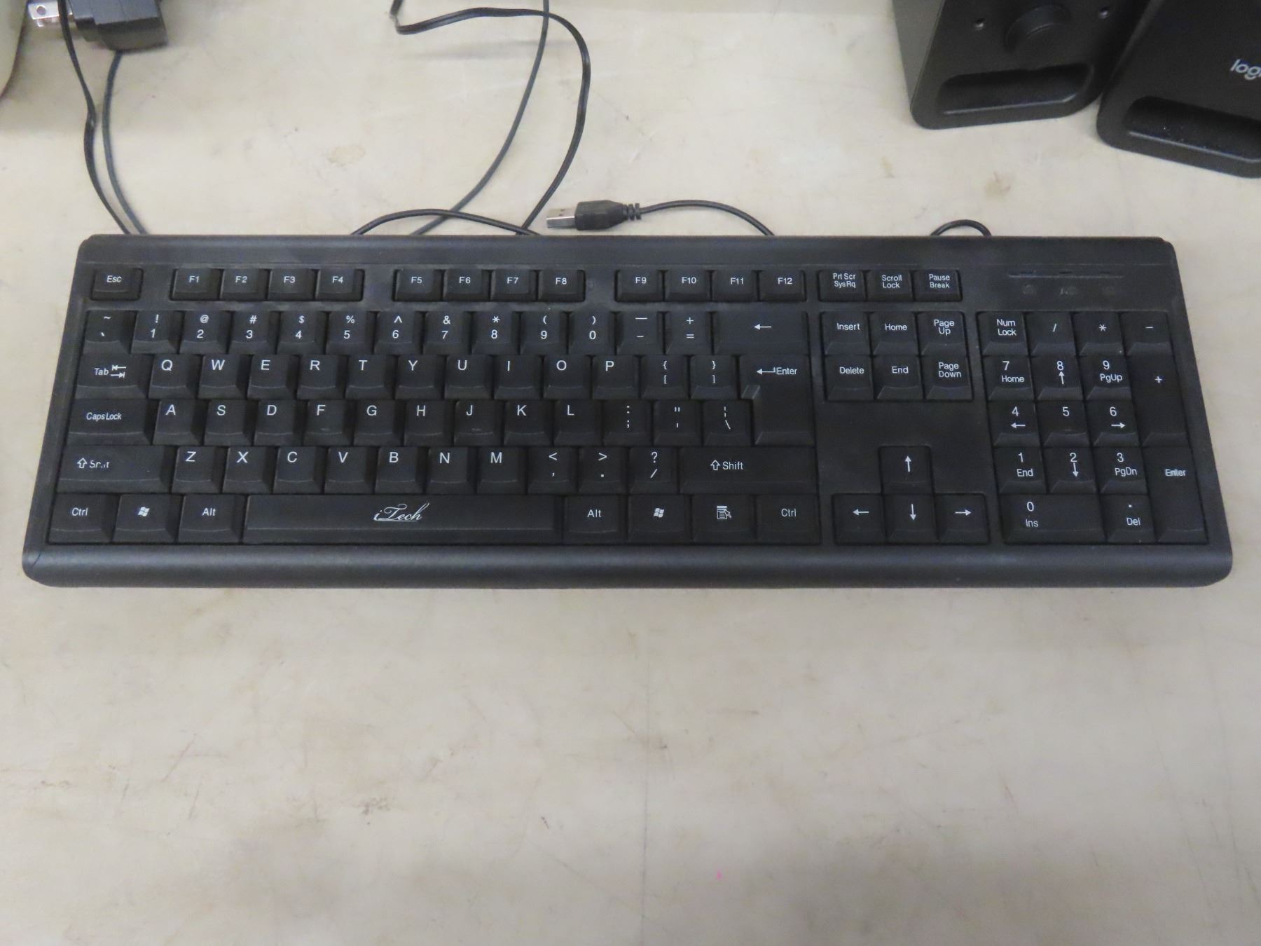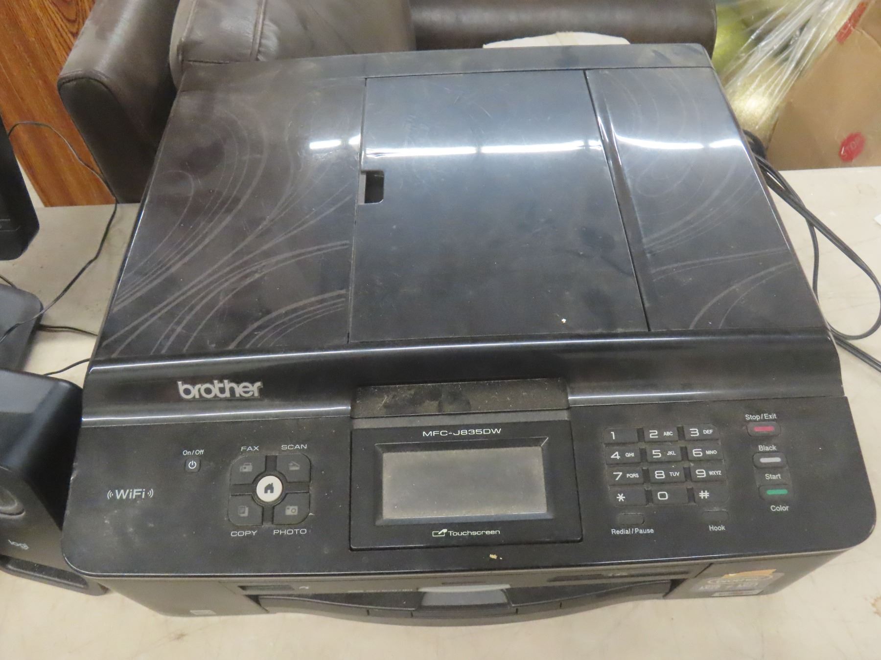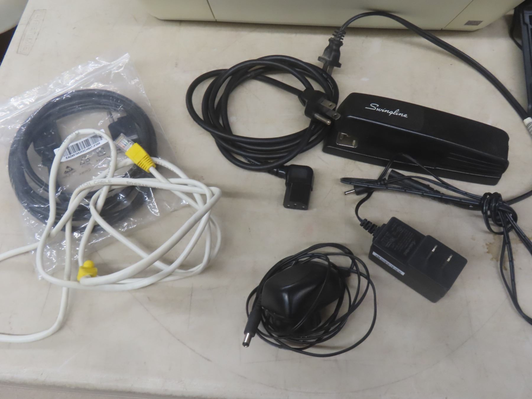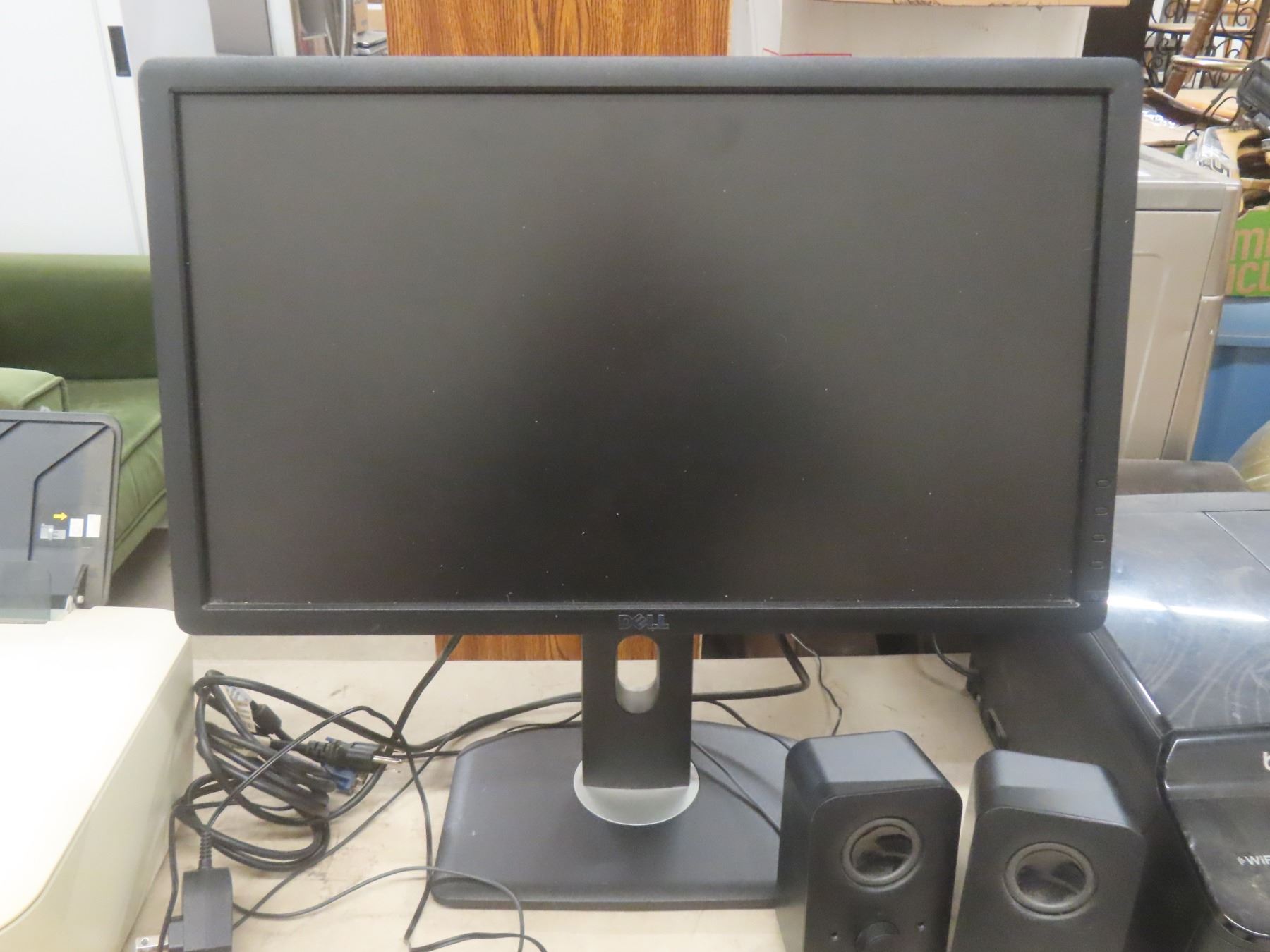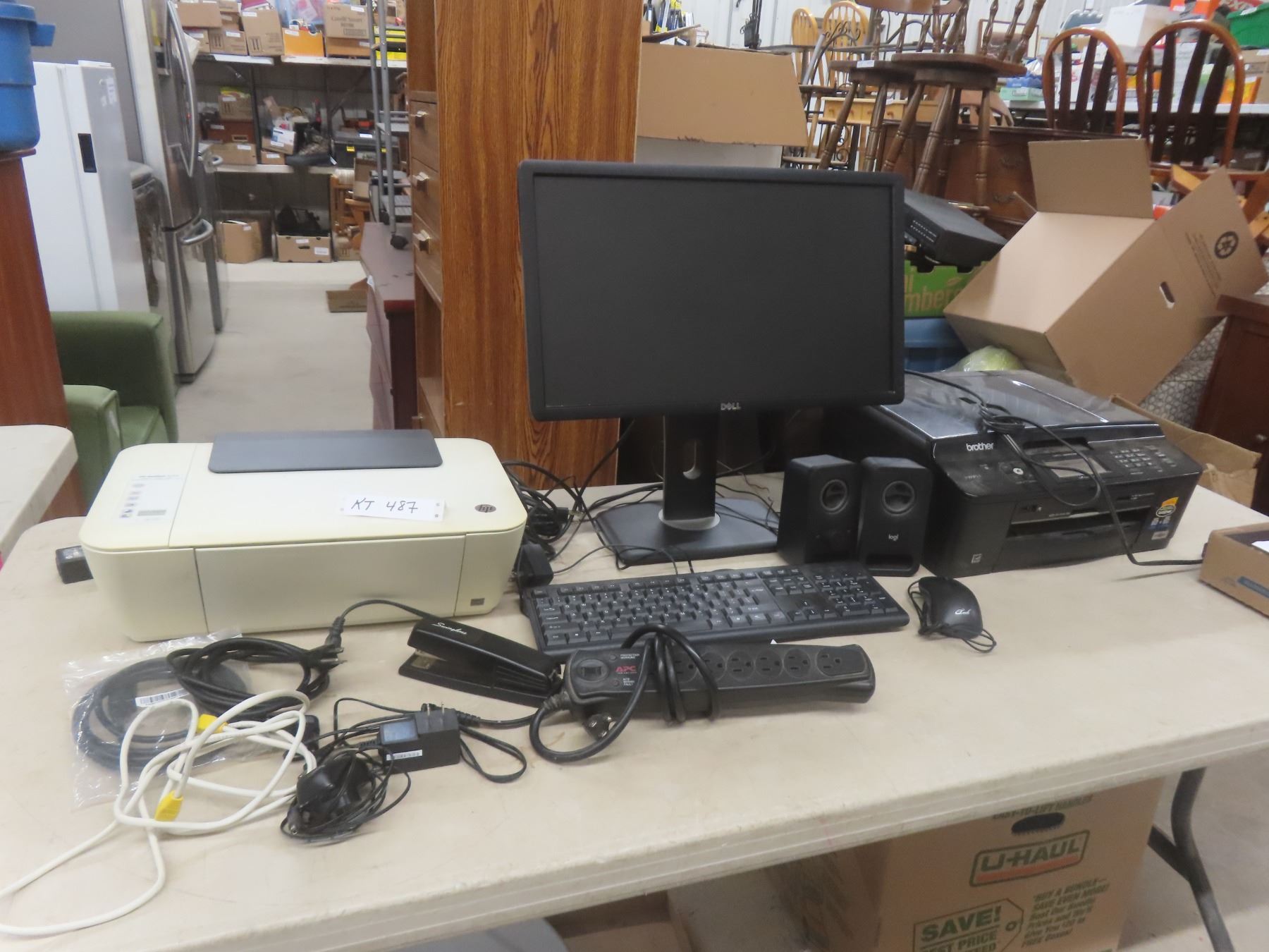 Dell Monitor, Keyboard, Two Speakers, Mouse, Two Printers, Power Bar, and More
