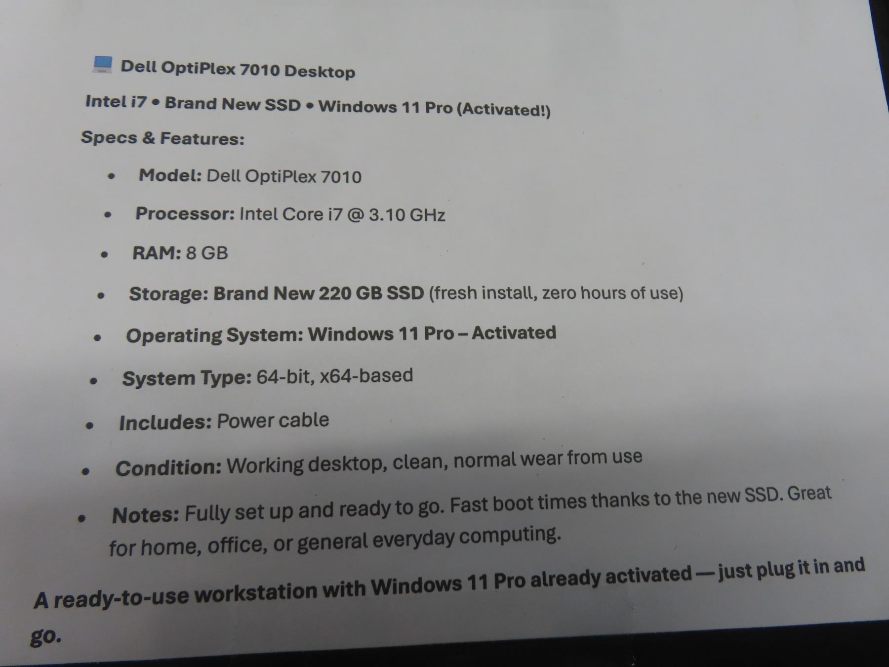Dell OptiPlex 7010 Intel i7, 8GB RAM, 220GB SSD, Windows 11 Pro