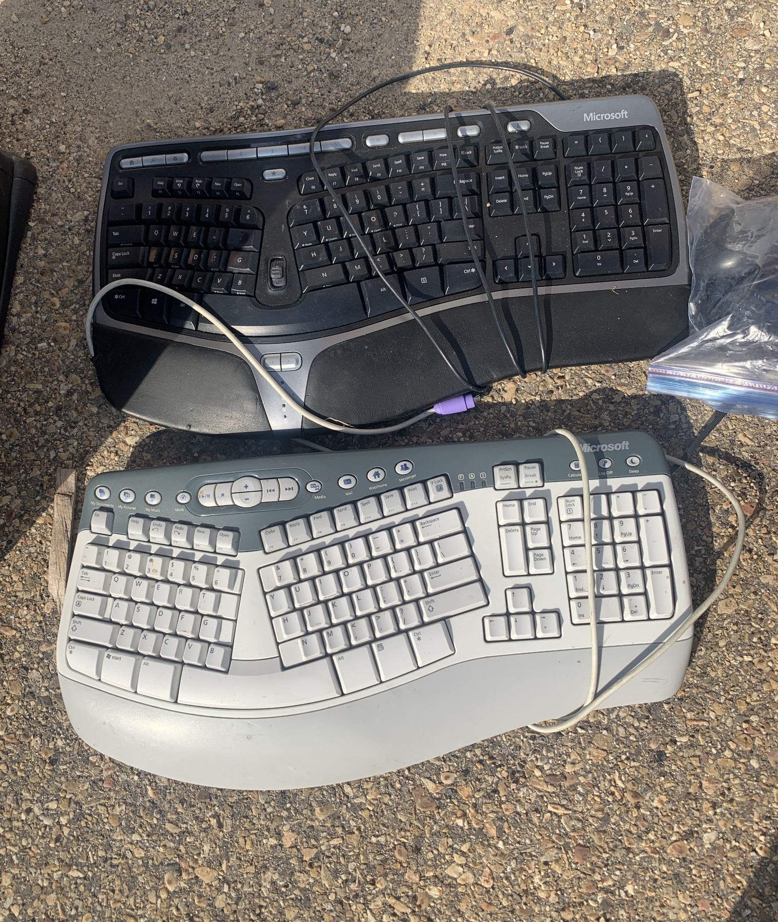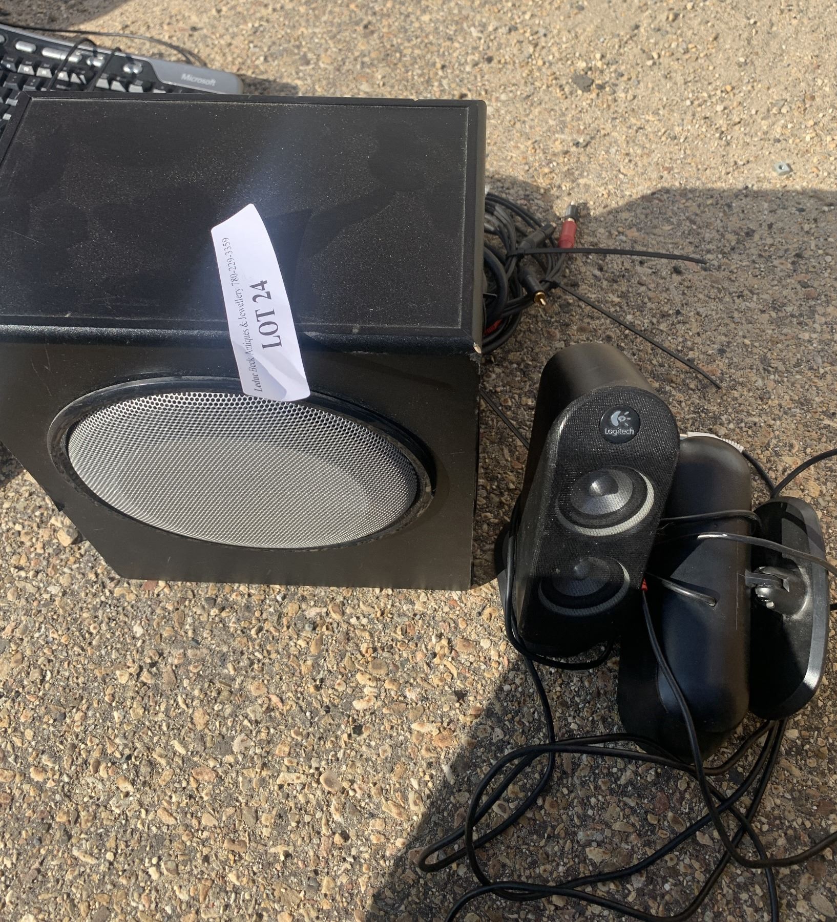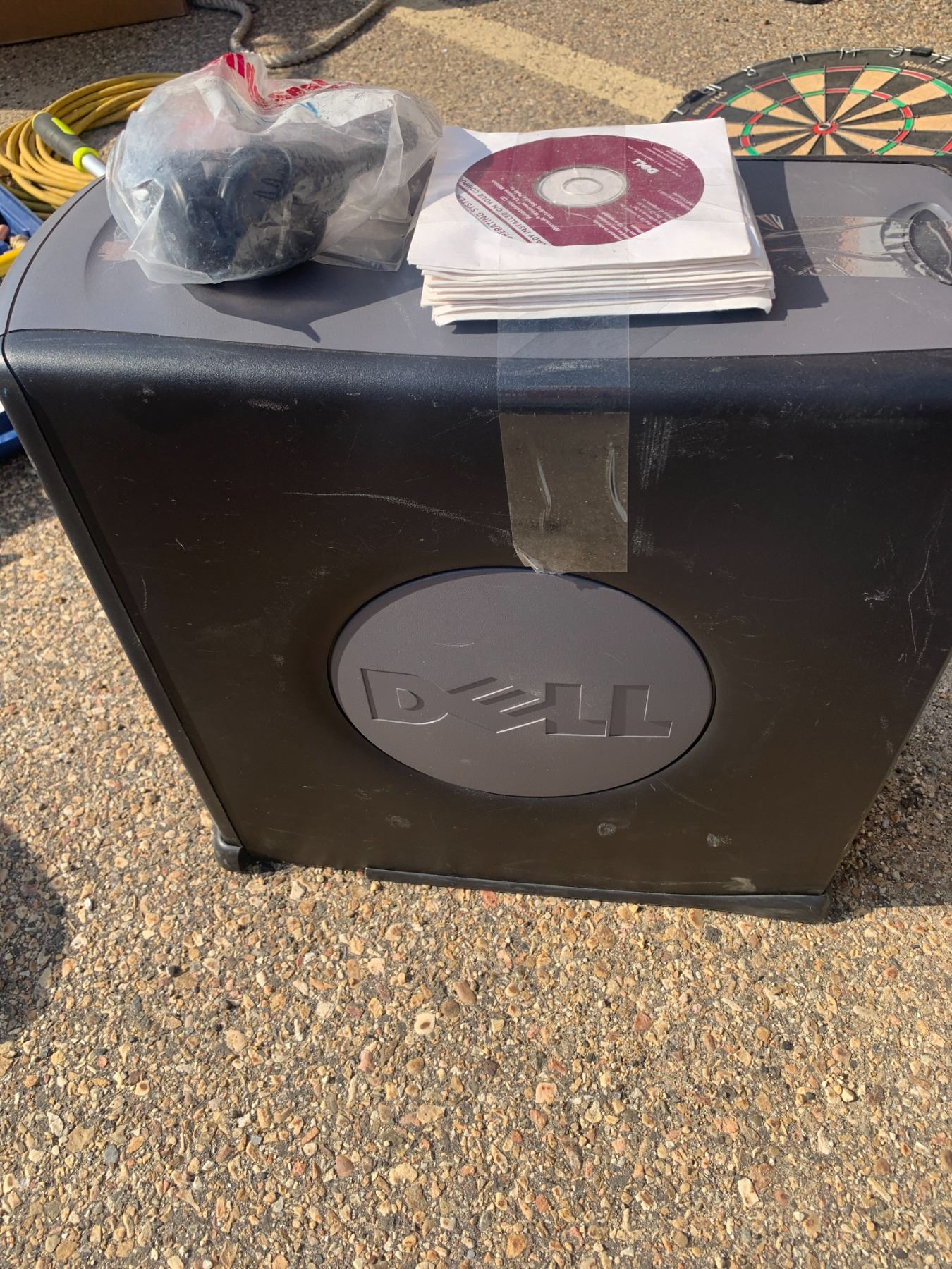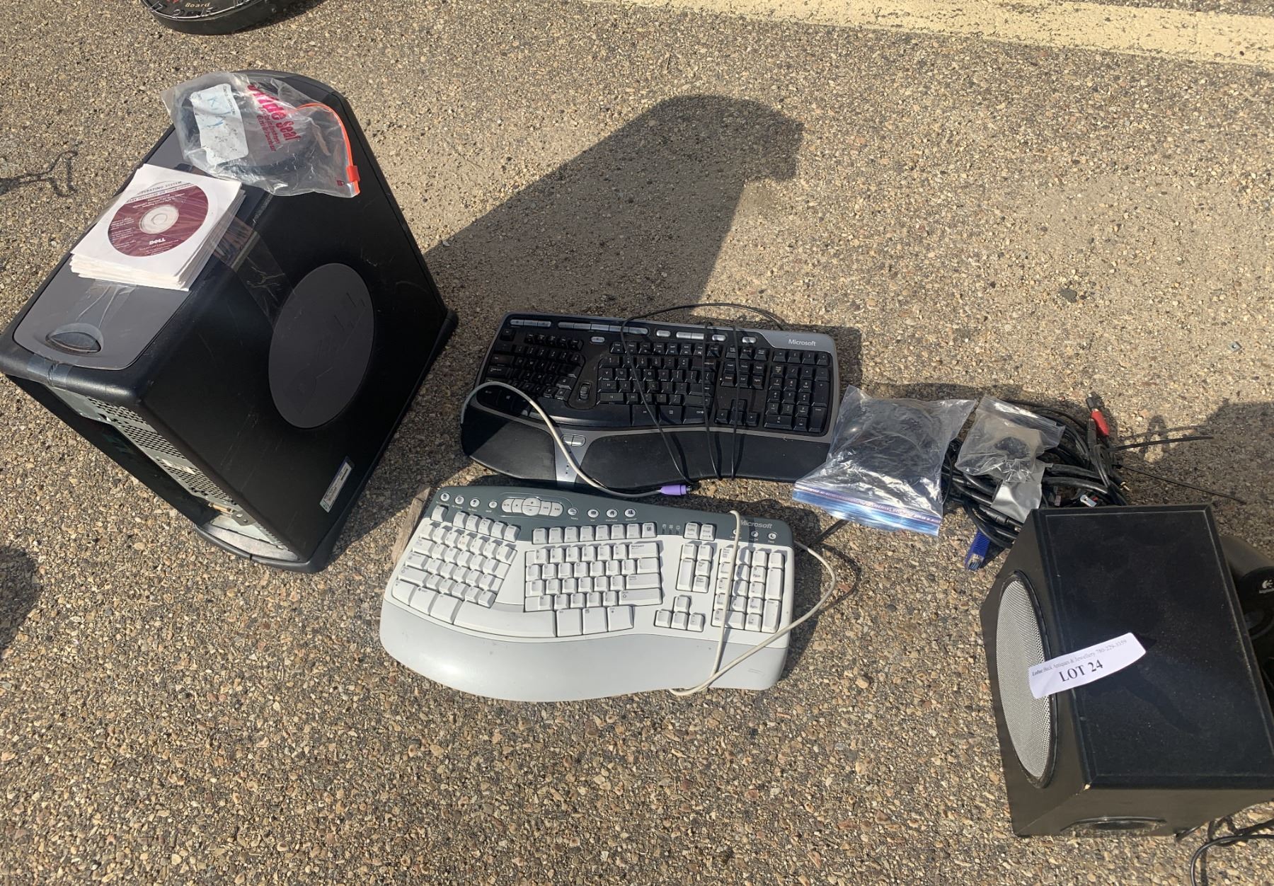 Dell PC Tower w Operating Manual, 2 Microsoft Ergonomic Keyboards, 1 Logitech Sub Woofer & 2 Speakers, Computer Mouse & Asst Cables