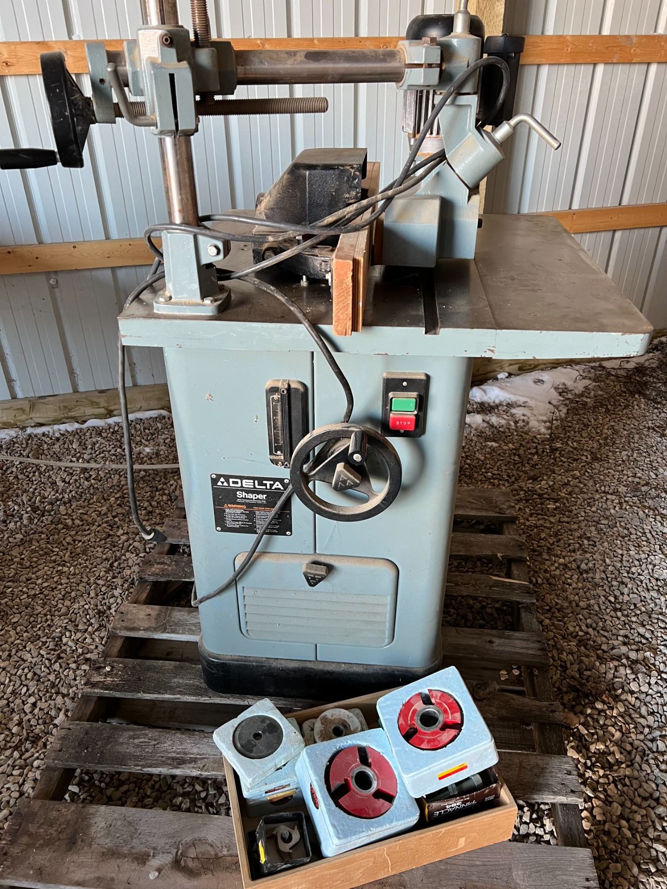 Delta 3 Hp Vertical Spindle Shaper with Power Feed and Lots of Bushings and Cutters