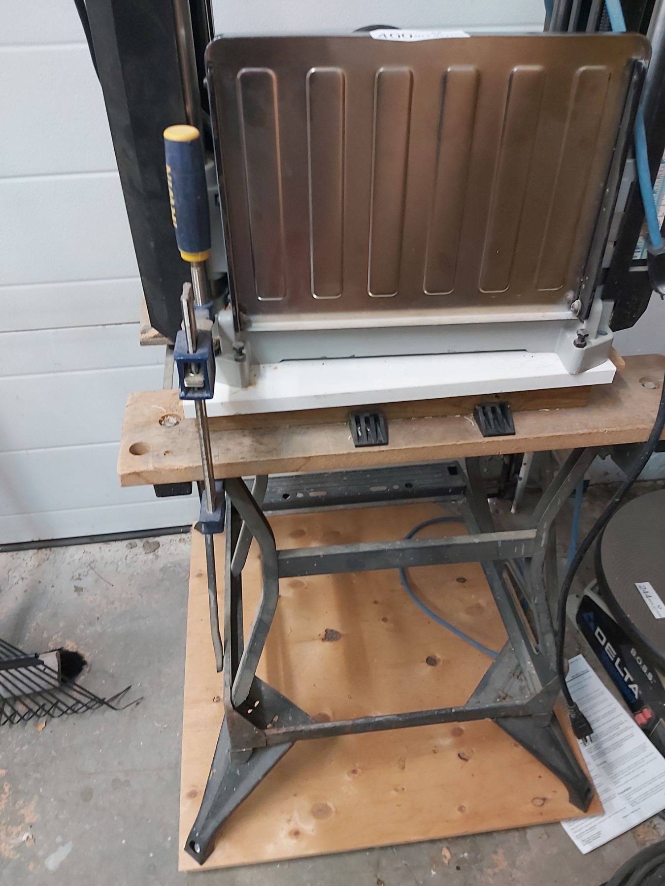 Delta ShopMaster Planer Model # TP400LS and Sawhorse On Wheels. Very Heavy, Please Bring Adequate help to Load