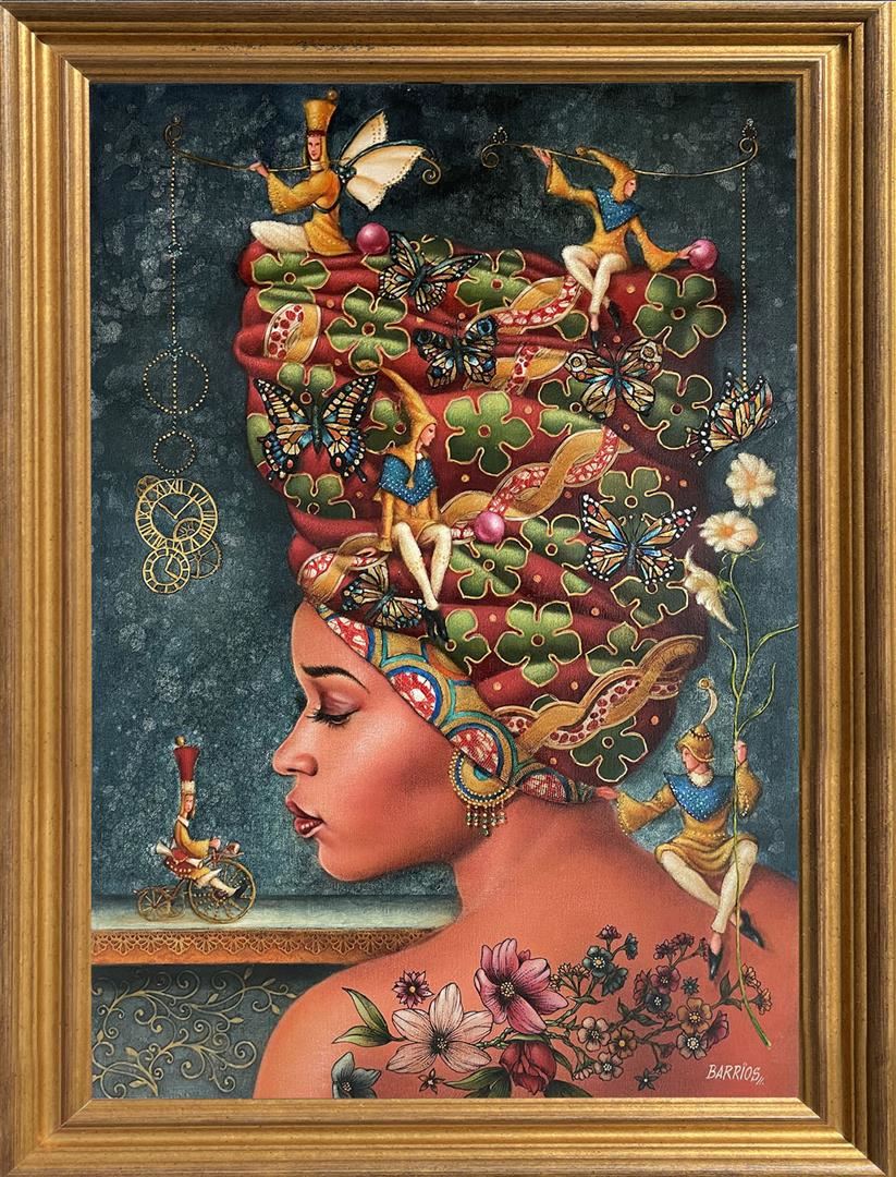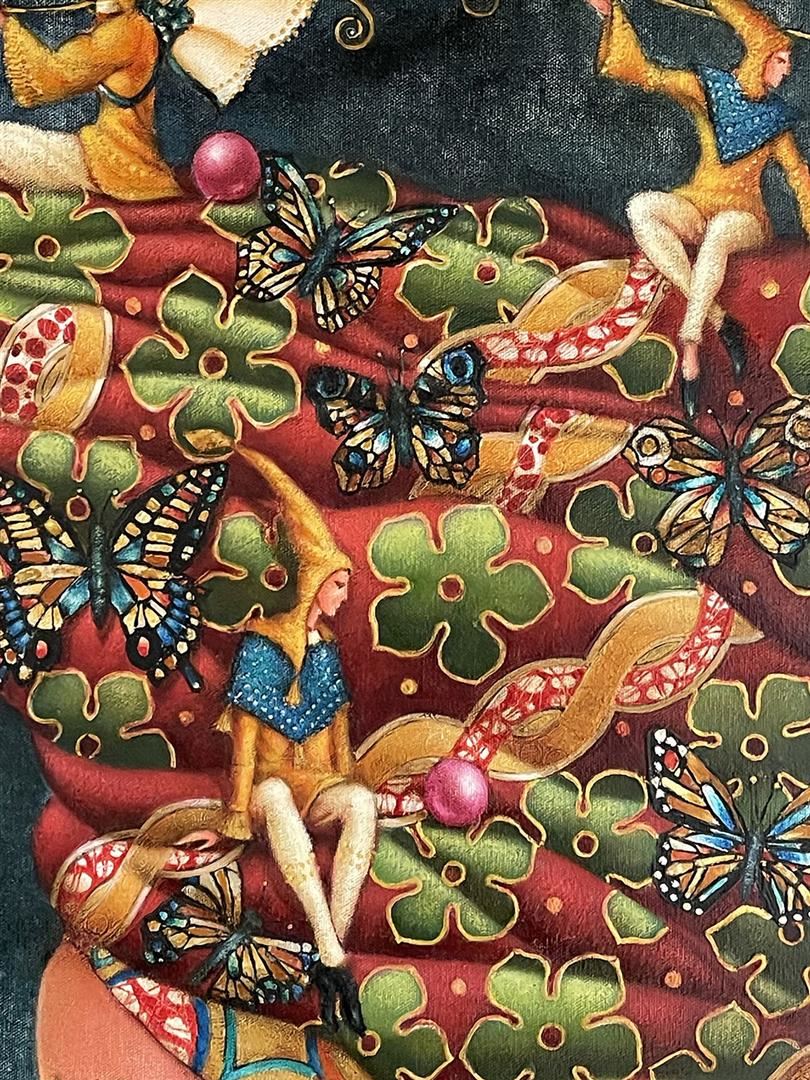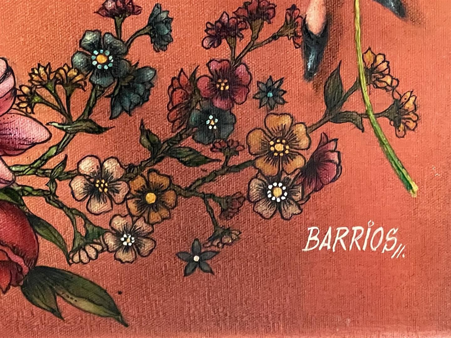 Bright beautiful original oil on canvas. Hand signed by artists. Artwork comes with a certificate of authenticity. This artwork comes framed ready to hand. Size 23x33"