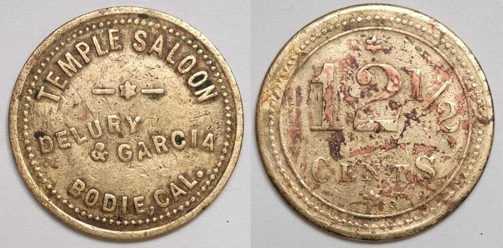 GF 12 1/2c IT. Brass token that has been gold plated we believe in the 1880"s. Some gold wearing off on reverse side.
