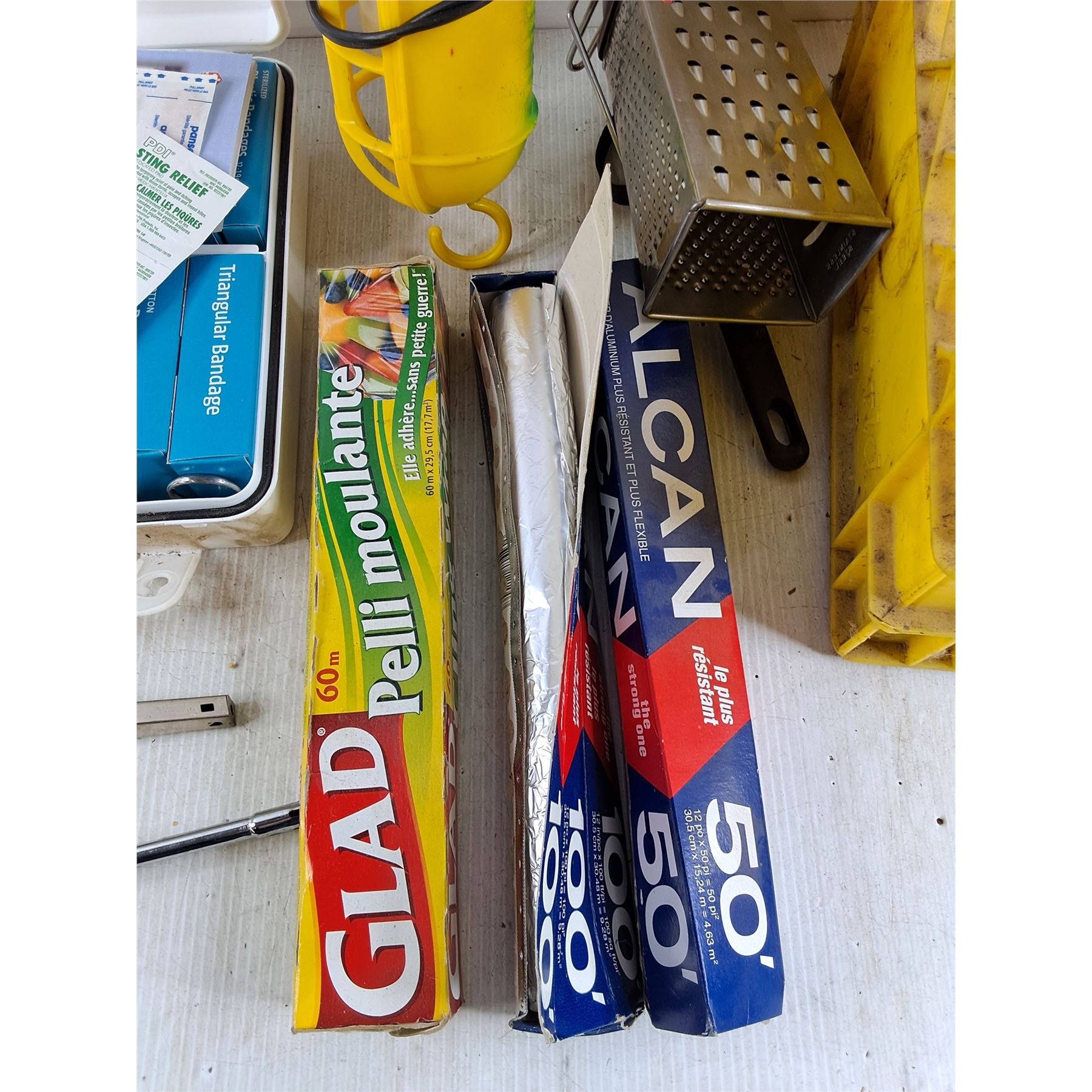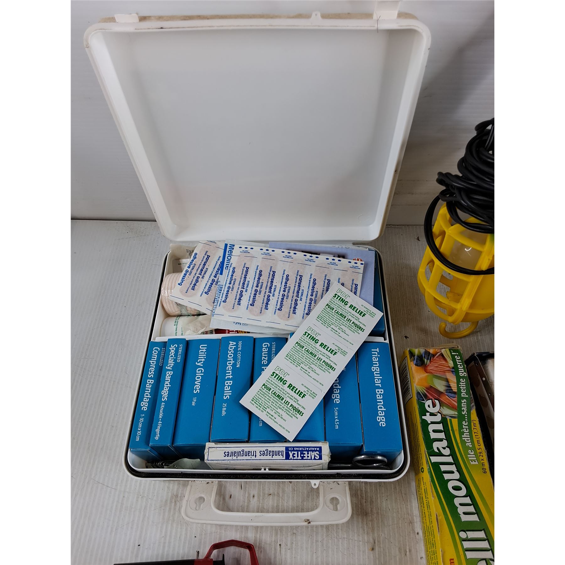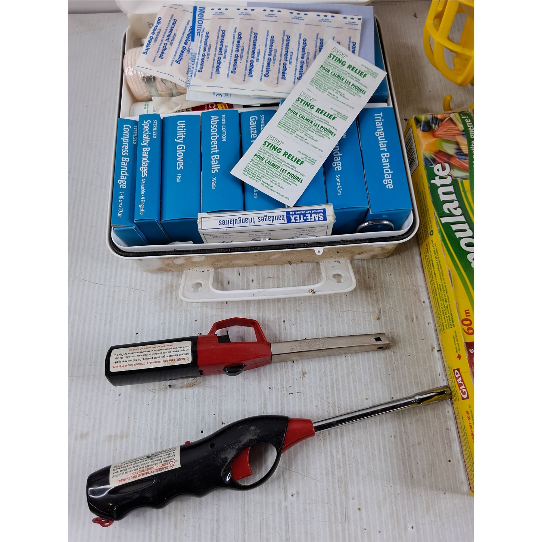 Deluxe First Aid Kit - Expired, 12V Troublelight, Stove Lighter, Cheese Grater, Milk Crate, Tin Foil