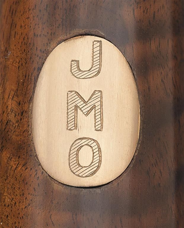 As confirmed by the copy of a letter from Eugene F. Williams, Jr., this shotgun was once the personal property of the late John M. Olin. The shotgun features dual bead sights on a vent rib, special WS-1 choke, 2 3/4 inch chamber and jeweled bolt. The XXX walnut checkered straight grip stock features a "JMO" initial oval for John M. Olin on the underside and is fitted with a leather covered recoil pad. Note that standard production Model 1200s had a pistol grip stock. The high grade walnut forearm and stock are checkered. Note that standard Model 1200s had a pistol grip stock. Length of pull is 14 inches. A custom John M. Olin collection sign (40"x15") is also included.
