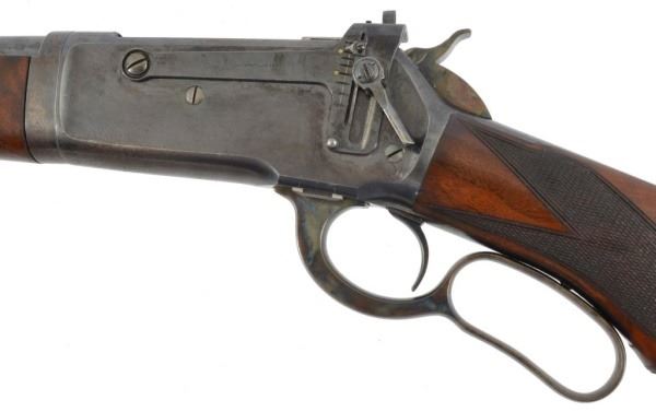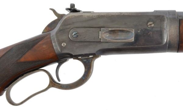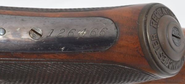 * Serial no. 126466 .45-70 Deluxe take down rifle. with proof marks on barrel & receiver marked "Not English Make" with other British proofs. Very good condition 85% blued frame with loss on top frame & around collar. strong bore, clear barrel address, strong case hardening on lever & hammer.