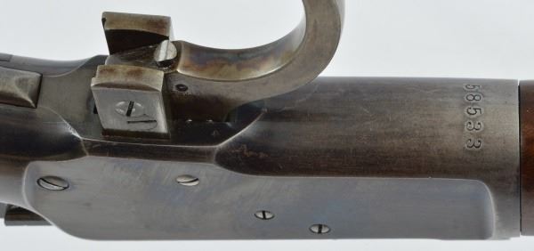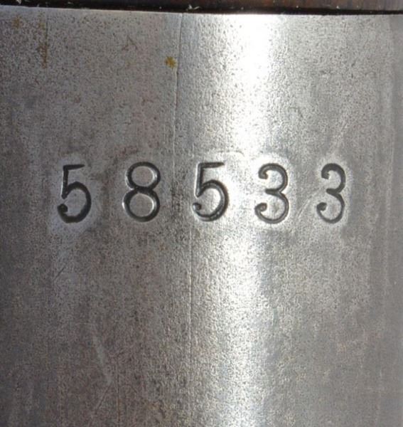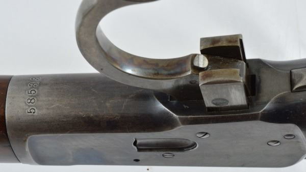 Serial no. 58533 very good condition retaining all of the barrel finish, most (80%) of the finish on the receiver & traces of case hardening on lever. Deluxe wood in good shape with small ding in foregrip. Crisp action, good bore.