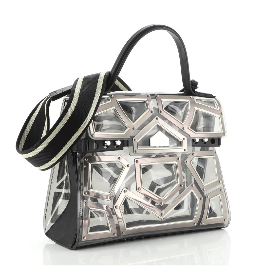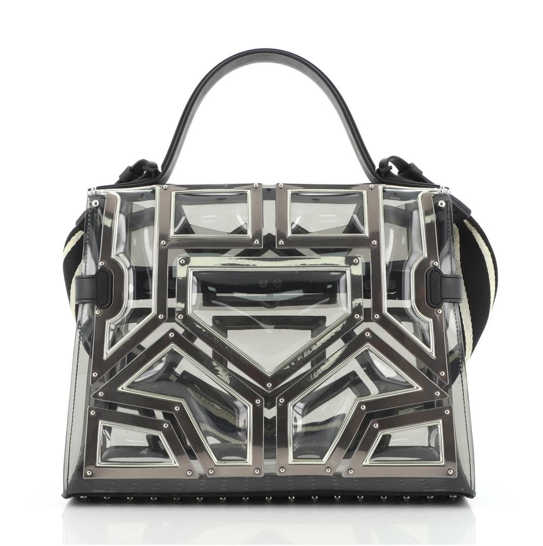 Delvaux Gladiator Tempete Top Handle Bag Metal Embellished Vinyl GM Clear, Silve