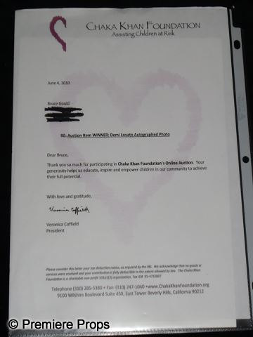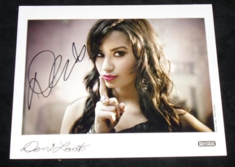 Demi Lovato Autographed Promo card - A signed color publicity photo. Includes letter from charity auction. 8" x 10"